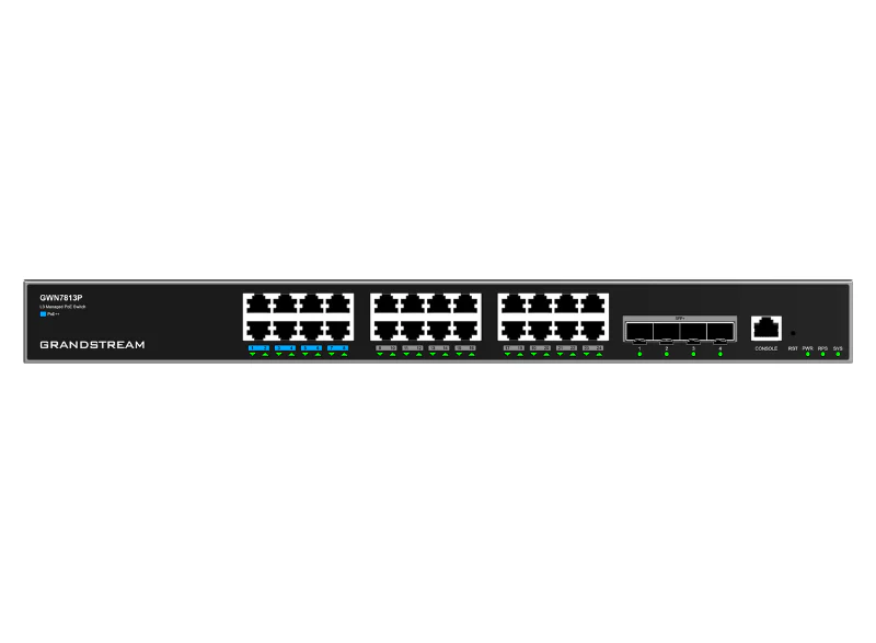 In conclusion, the Grandstream GWN7813P is a powerful and future-proof Layer 3 managed switch designed to deliver high performance, enhanced security, and intelligent power management. Its advanced VLAN capabilities, QoS prioritization, IGMP/MLD Snooping, and robust PoE support make it a versatile networking solution suitable for corporate offices, campuses, and industrial environments. For enterprises seeking a reliable, scalable, and efficient network backbone, the GWN7813P stands out as an exceptional choice.